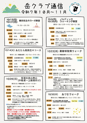 【持ち物】昼食・飲料水・タオル・帽子・行動食・トレッキングシューズ・トレッキングポール・着替え・雨具
