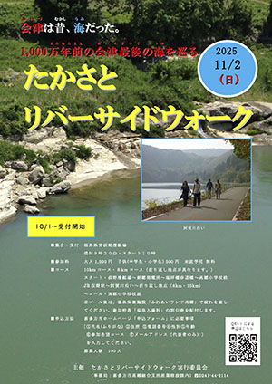 1000万年前は海だった会津の風土浪漫あふれる喜多方市高郷町。雄大な阿賀川を秋の紅葉を眺めながらウォーキングするイベントです。コースは、福島県内唯一の漕艇場で、国体を2度開催し「ボート、山を登る」と言われた県営荻野漕艇場をスタート、普段は入れない発電所の中を通り、雄大な阿賀川沿いを、折返し地点が異なる8キロと10キロのコースをウォーキングします。