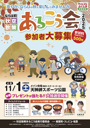 11月1日(土)に開催される「ならは町 秋空散策あるこう会2025」に参加し、200ポイントをゲットしよう!