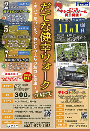 11月1日(土)に開催される「だてな健幸ウォークinつきだて~歩いて見つける! わたしのまちの魅力と健康~」に参加し、200ポイントをゲットしよう!