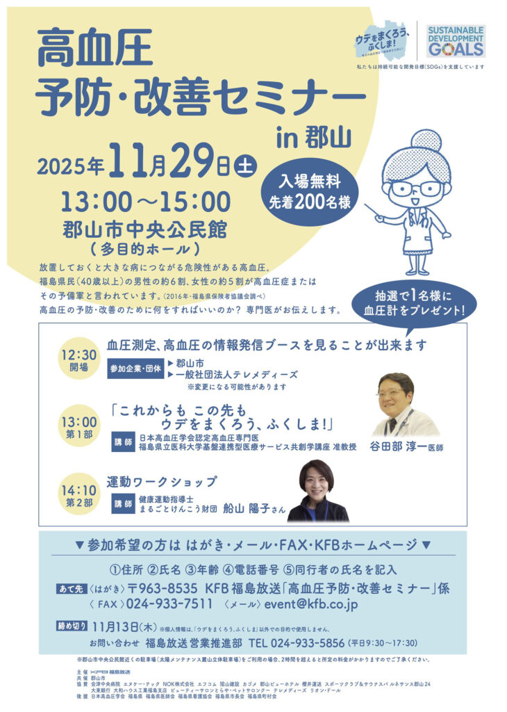 11月29日(土)に開催される「高血圧予防・改善セミナーin郡山」に参加し、200ポイントをゲットしよう!