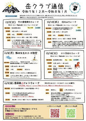 【持ち物】飲料水・タオル・帽子・防寒着・行動食・軍手・火鋏