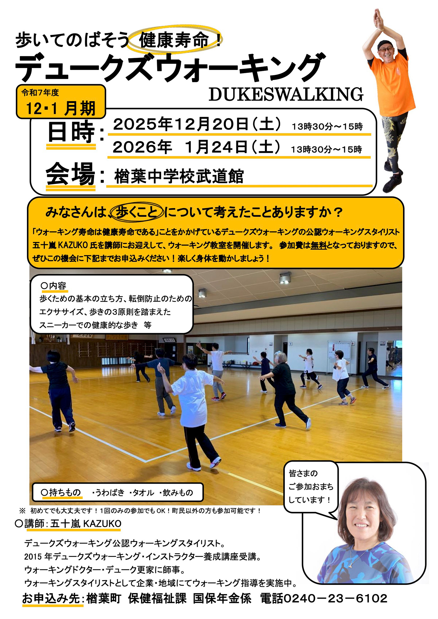 デュークズウォーキングの公認ウォーキングスタイリストである五十嵐KAZUKO先生による、ウォーキング教室を開催します。