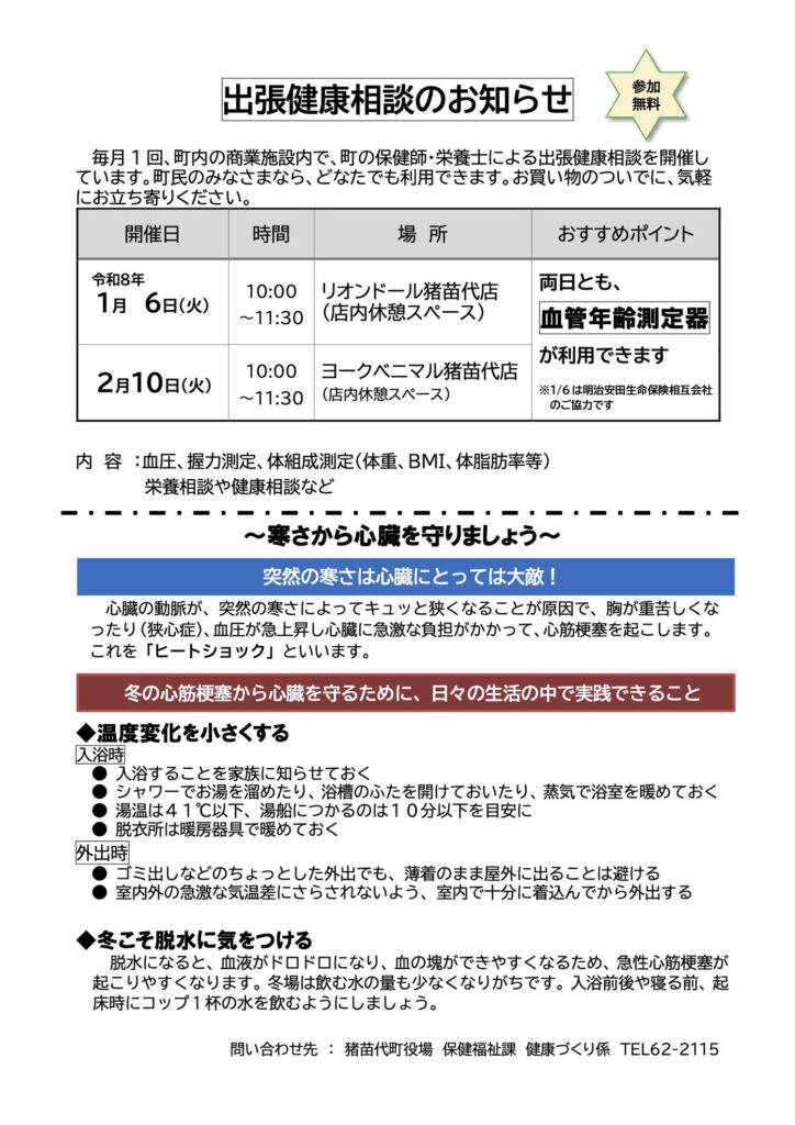 2026年1月から開催される「猪苗代町 出張健康相談」に参加し、200ポイントをゲットしよう!