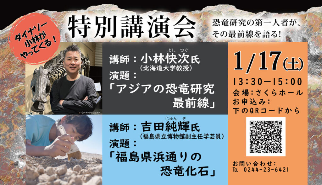 1月17日(土)に開催される 特別講演会「アジアの恐竜研究最前線/福島県浜通りの恐竜化石」に参加し、200ポイントをゲットしよう!