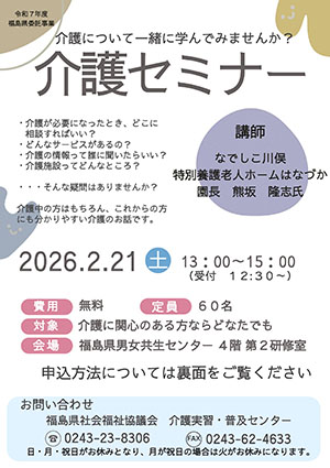 令和8年2月21日(土) 令和7年度介護セミナーを二本松市の福島県男女共生センターで開催します。