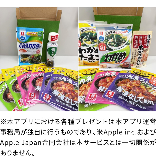 ・本アプリにおける各種プレゼントは本アプリ運営事務局が独自に行うものであり、米Apple inc.およびApple Japan合同会社は本サービスとは一切関係がありません。